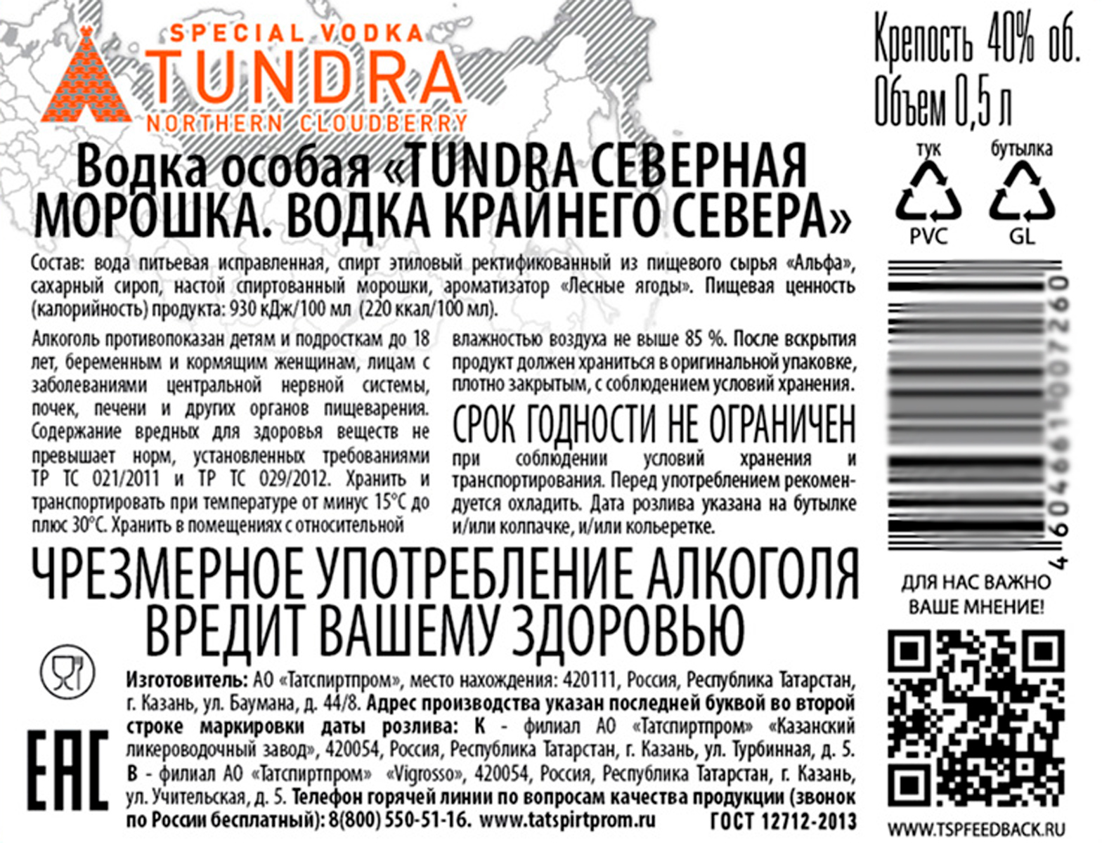 Водка особая Тундра Северная морошка
