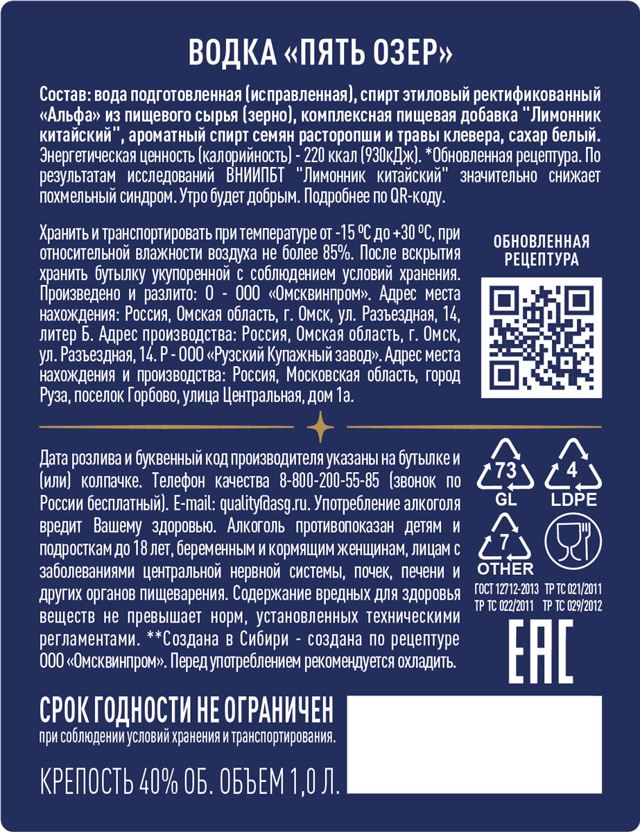 Водка Пять Озер