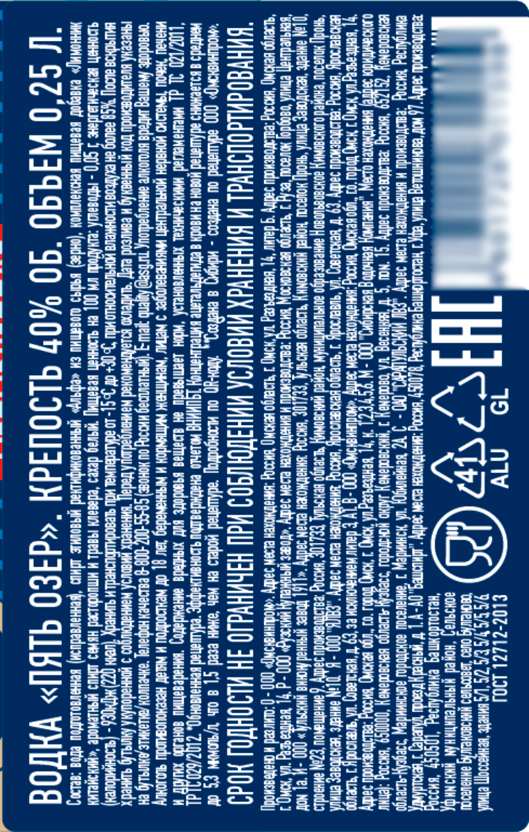 Водка Пять Озер
