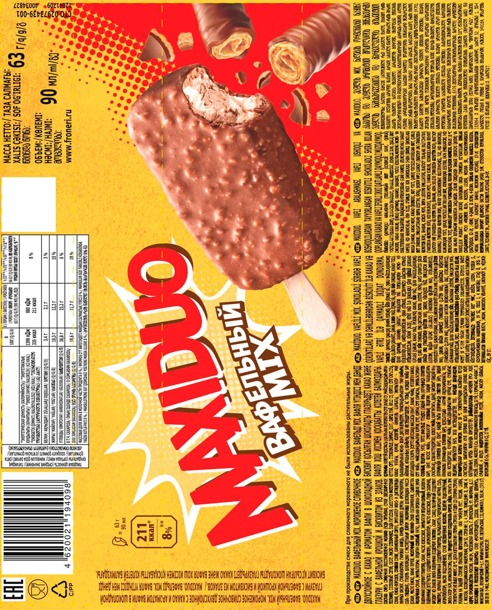 Maxiduo «Вафельный Mix» — встречайте первое эскимо бренда MAXIDUO! Это фантастически вкусное сочетание шоколадного мороженого и мороженого со вкусом вафли, покрыто настоящим молочным шоколадом с миксом вафельной крошки. Попробовав нашу новинку один раз, остановиться будет просто невозможно. МAXIDUO – максимальное удовольствие!