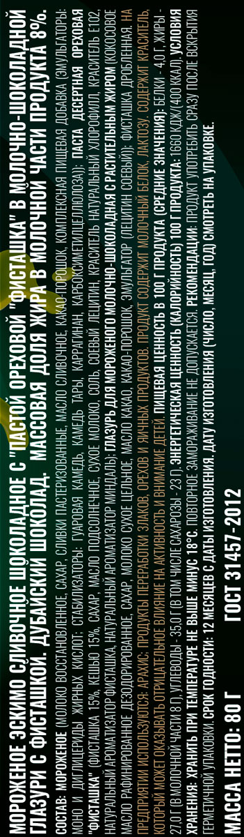 Сливочно-шоколадное эскимо Норден со вкусом дубайского шоколада
