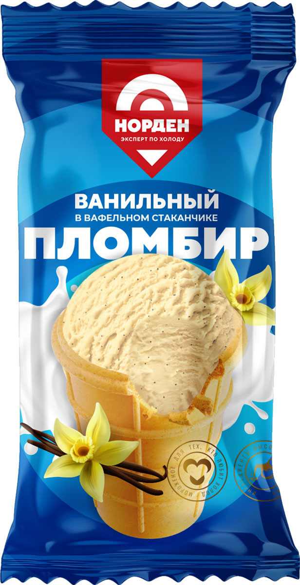 Ванильный пломбир Норден в вафельном стаканчике