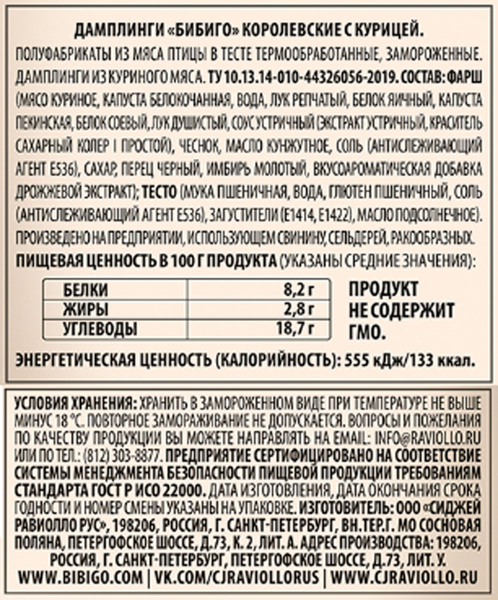 Дамплинги королевские Бибиго с курицей и овощами