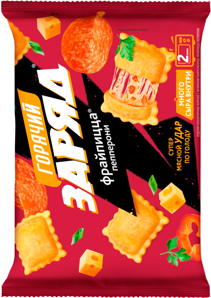 Фрай-пицца пепперони «Горячий заряд» — аппетитные зажаренные мини-пиццы с пикантной колбаской «Пепперони» и большим количеством сыра внутри.