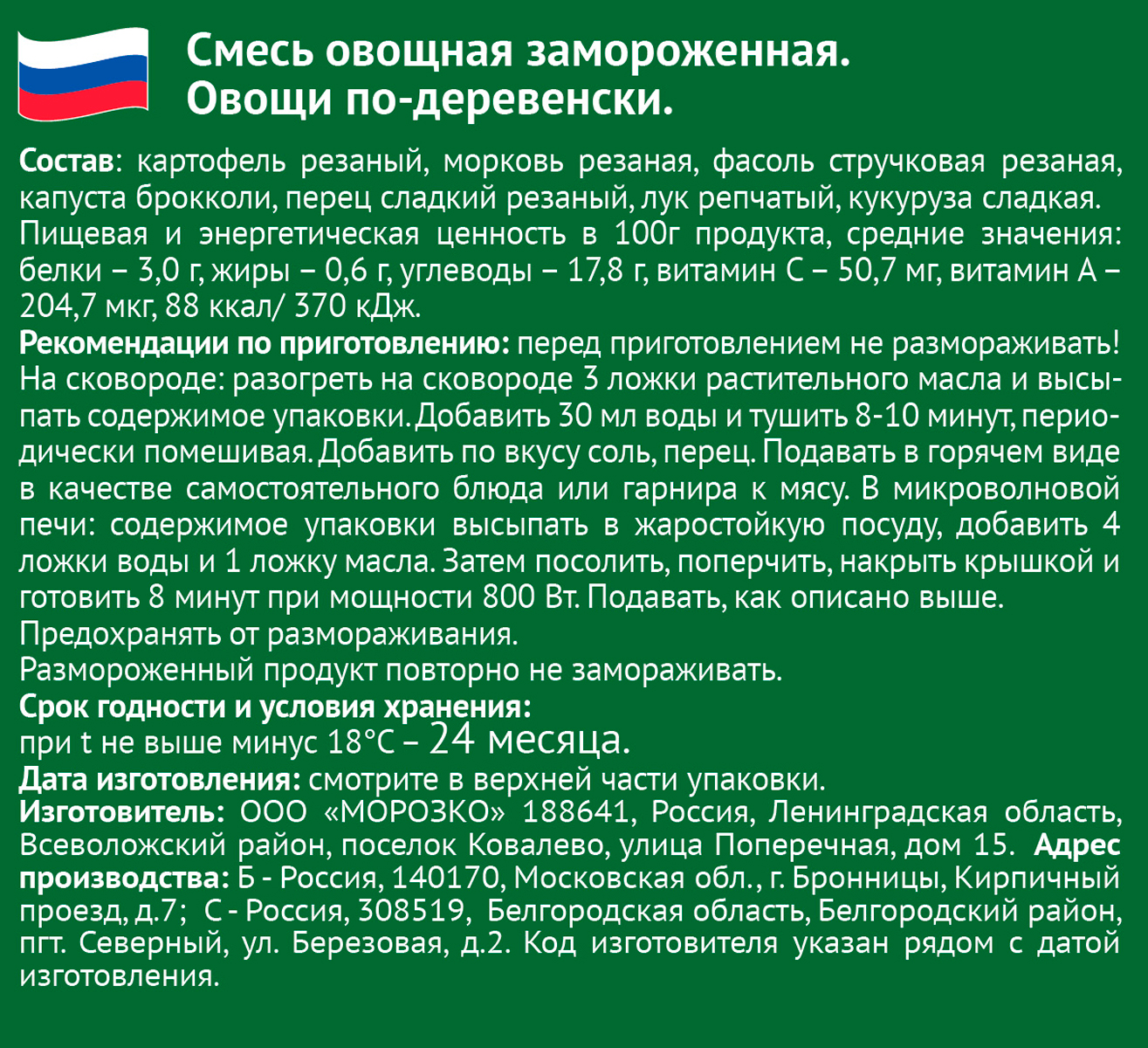 Грин Морозко овощи по-деревенски