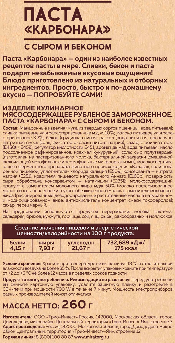 Паста Карбонара Мираторг