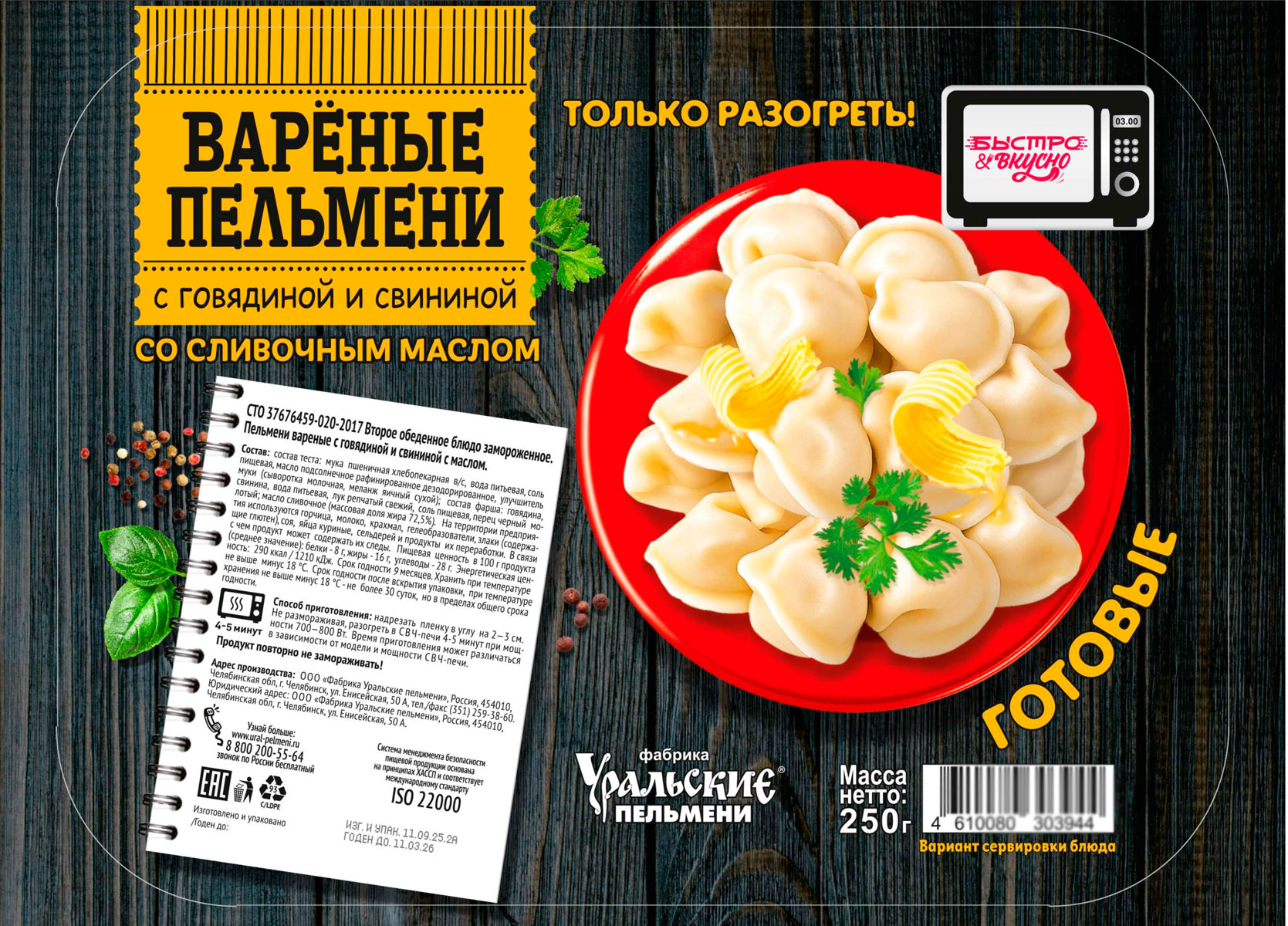 Нежные, ароматные пельмени с сочной мясной начинкой — звучит волнующе, согласитесь? Продукт полностью готов, вам остается только разогреть его в СВЧ-печи и насладиться этим потрясающим вкусом!