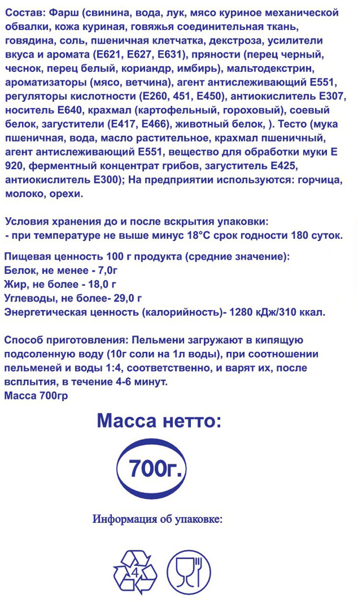 Пельмени По Бирски с говядиной 700 г