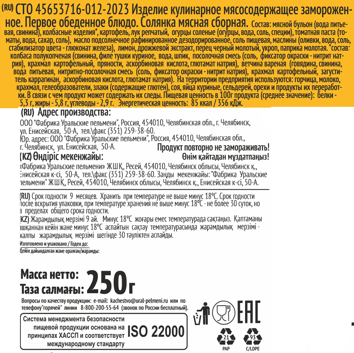 Очень вкусная солянка. Порция маловата, за это минус пол звезды. Есть всё, что должно быть в солянка. Когда некогда готовить, или нужно быстро поесть на работе - вообще класс!