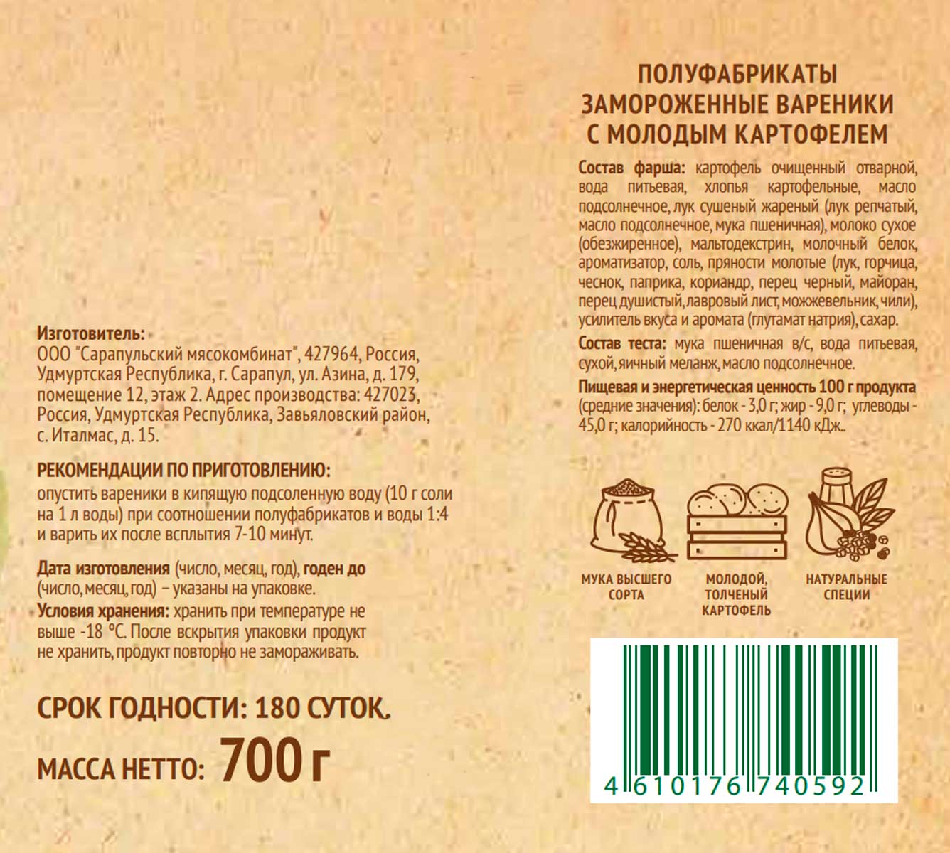 Вареники Село зеленое с картофелем 700 г