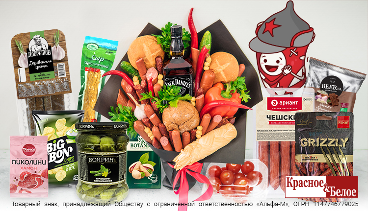 Заходите в наш каталог на сайте или в приложении и выбирайте все, что ему понравится. Останется только оформить все его любимые вкусняшки в красивый букет – и вуаля! Ваш мужчина самый счастливый и… сытый! Ну, носочки тоже можно, куда ж без них?