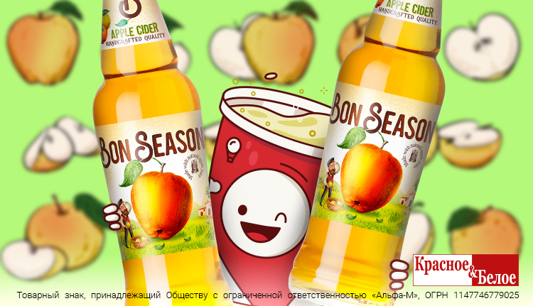 Солнце светит, но еще не греет? А вот наша новинка — очаровательный яблочный сидр — не только согреет вас, но и зарядит летним позитивом. Свежие натуральные ингредиенты — вот залог настоящего яблочного сидра, который вобрал в себя всю силу лета. Высококачественный сидр Bon Season сделан из натурального яблочного сока и не содержит искусственных ароматизаторов. Дерзкий шипучий напиток удивит вас ярким ароматом спелых яблок и насыщенным вкусом с приятной легкой газацией. Берите побольше и угощайте друзей.