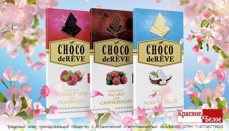 Весной хочется пробовать новое! Как насчет интересных нетривиальных сочетаний? Нежнейший белый шоколад с ноткой кокоса или изысканный молочный с кусочками клюквы, а может, обволакивающий темный с малиной? М-м-м, шоколад Choco De Rêve — это уникальная комбинация молочного, темного или белого шоколада и изысканных добавок. Шоколад Choco De Rêve приготовлен по традиционным польским рецептам с использованием самых отборных ингредиентов. Качество Choco De Rêve оценят по достоинству даже самые искушенные гурманы и сладкоежки. А красивая и элегантная упаковка сделают из простой плитки шоколада милый презент, которым точно захочется поделиться.