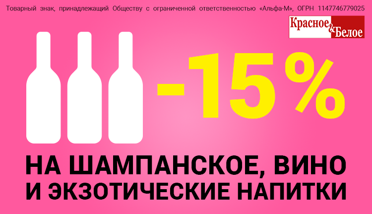 Скидка не суммируется со скидкой по карте и промокоду. Цена на игристые вина по акции не может быть ниже минимальной розничной цены.