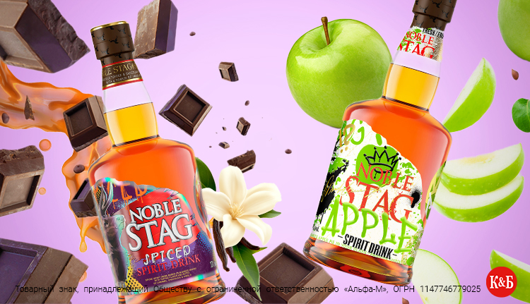 Напитки на основе виски «Нобл Стаг» известны как своим ярким дизайном, так и изысканным вкусом. В сети магазинов «Красное&Белое» представлены два варианта: «Нобл Стаг Спайсд» и «Нобл Стаг Яблоко».