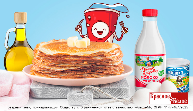 Молоко отборное, свежие яйца, масло растительное — в наших магазинах вы всегда найдете нужные продукты для того, чтобы приготовить самые вкусные, тонкие и ажурные блинчики. Рецепт не важен, ведь у каждого он свой, фирменный, главное, печь с душой! Ну а чтобы сдобрить уже готовые румяные блины, берите сливочное масло, сгущенку или сметанку.